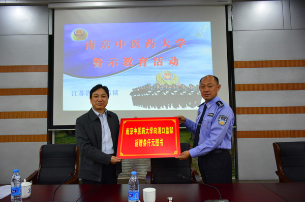 会上,张策华副书记代表学校向浦口监狱捐赠了3000元图书。