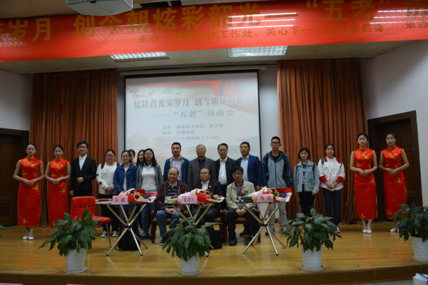4月27日晚,由离退休工作处主办、关爱协会承办的“忆往昔光荣岁月、创今朝炫彩韶光” —“五老”访谈会在大学生活动中心107报告厅圆满落幕!校党委常委程革副校长,原南京中医学院(我校前身)副院长、现校关工委陈德华副主任,原校党委副书记、现校关工委王家法常务副主任,校关工委杨进副主任,校关工委讲师团金鑫常务副团长,离退休工作处沈强处长、刘云龙副处长出席本次访谈会。本次活动特邀陈德华教授、杨进教授、金鑫教授担任访谈嘉宾。