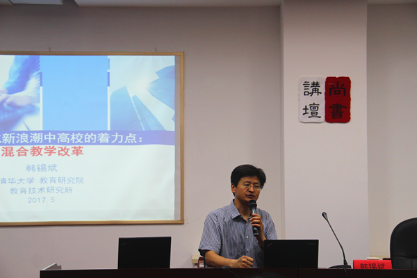 韩锡斌副院长的报告是我校与清华大学合作开办的混合教学与教师信息化教学能力提升研修班的第一讲。在一个月的时间里,参加研修班的40多位教师将通过线下线上相结合的方式系统地学习混合教学的理论和方法,提高信息化教学的能力和水平。开展混合教学改革,推动现代教育技术与教育教学深度融合是我校“十三五”期间教育教学改革的重要内容。我校将以本次研修班为契机,同清华大学深入合作,在教师中形成参与混合教学改革的强烈意识,营造开展信息化教学的浓厚氛围,促进我校课程综合改革再上新台阶。