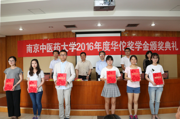 张金岩女士首先宣读了《关于表彰2016年度华佗奖学金获得者的决定》,与会领导分别为获奖研究生和获奖本科生代表颁发证书。卫生经济管理学院蒋晗同学作为获奖代表发言,表达了对曹炀董事长高尚品格的崇敬与无私奉献的感激,并表示将不懈努力,为实现中医梦、中国梦而拼搏奋斗。