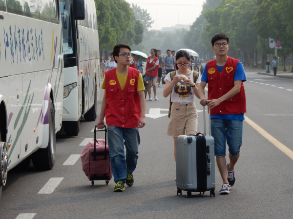 志愿者们为毕业生送行