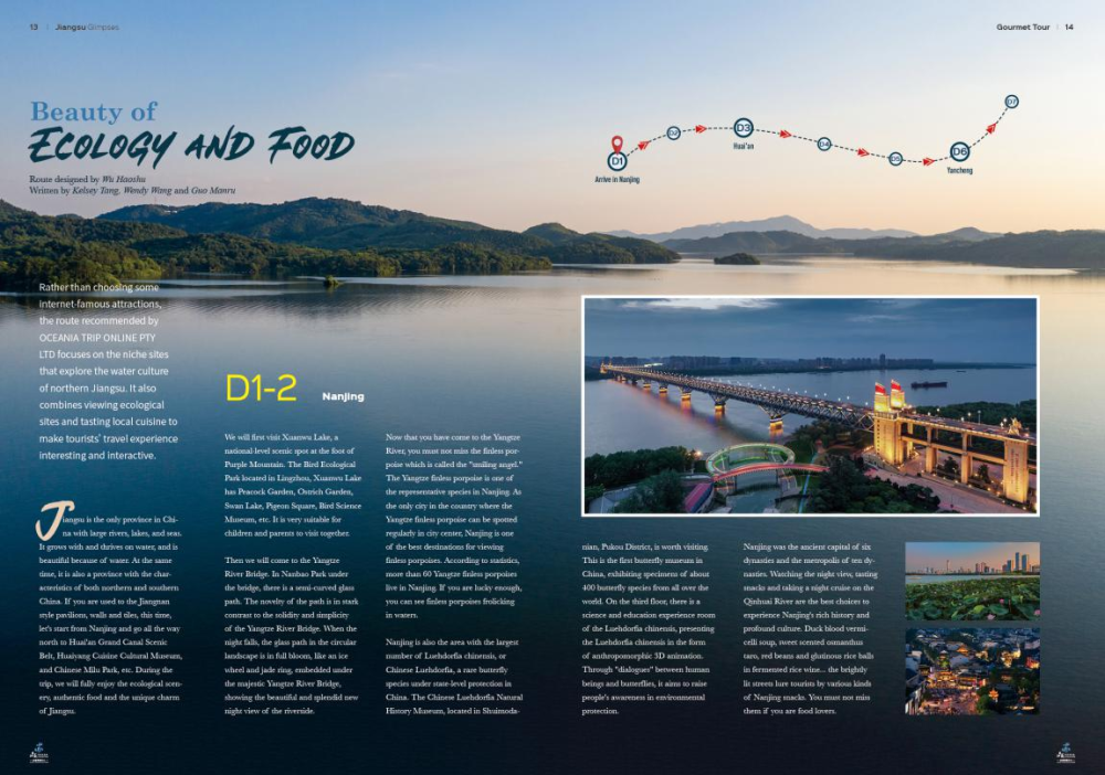来自厄瓜多尔的河海大学国际教育学院留学生Jhandre Ronald Intriago Gordillo阅读了Yolanda这篇文章后表示,Yolanda描述的中华麋鹿园滩涂湿地一碧千里,暗夜星空一览无余,薄雾中不时可见麋鹿行走在林间和滩涂间,如梦似幻。Jhandre说:“在ins账号@VisitJiangsu首页上,我看到了10张色彩明媚的手绘精品线路,每条点赞人气都过万。其中,大洋洲旅行社推荐的《寻味江苏,醉美山水》线路也展现了盐城湿地的美。线路提到的盐城‘吉祥三宝’麋鹿、勺嘴鹬和丹顶鹤,还有‘微笑天使’长江江豚以及水墨大埝中华虎凤蝶自然博物馆里的3D蝴蝶,都是那样的灵动。我还关注到,《烟火里的禅意水乡》《山水胜境,修身养心》《来江苏,徜徉在世界文学之都与世界美食之都》三条线路都推荐了南京牛首山踏青,说明其国际客源吸引力高,母校江宁校区附近的‘春牛首’果然不负盛名。”