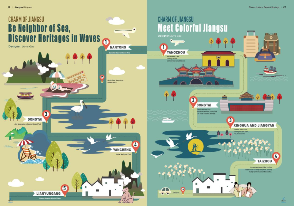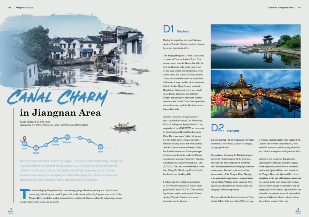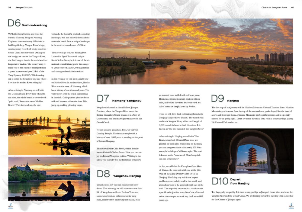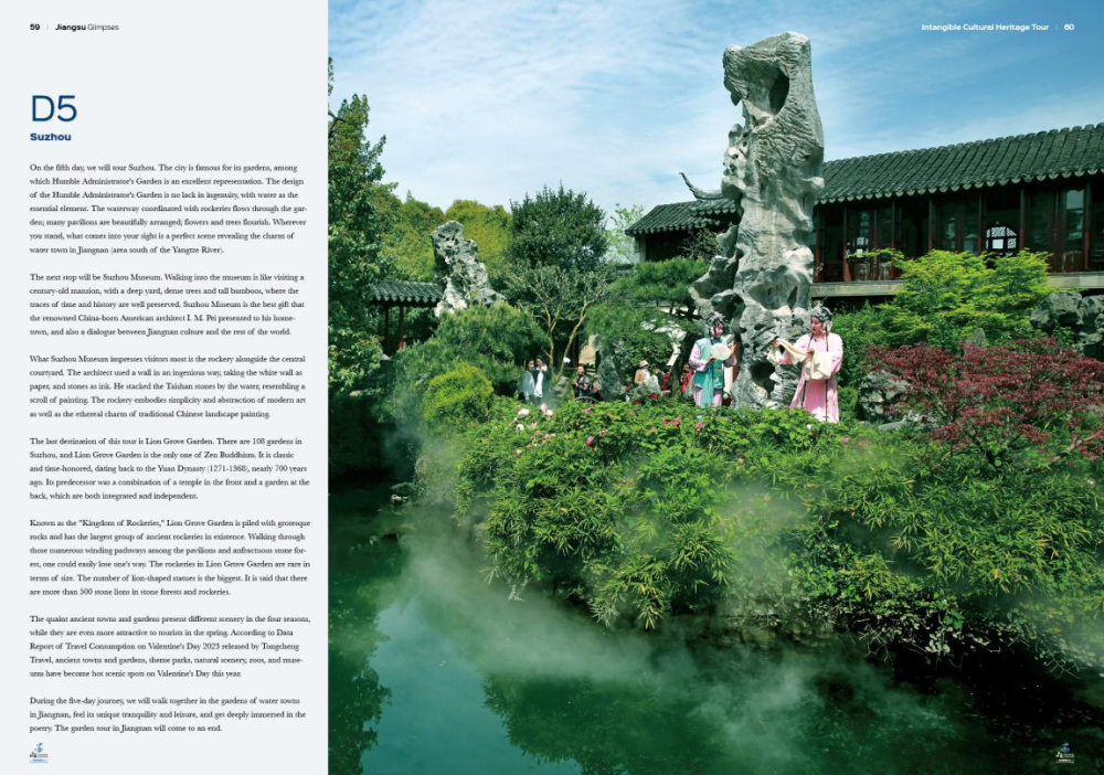 江河湖海泉,万里共婵娟。古典园林、水乡古镇、遗址遗迹、山水城林、美丽乡村、文博非遗、水鲜水菜、淮扬味道……本期文旅指南里,这些苏式工笔令人向往,诚引百万“海内知己”入胜。春日融融,春风蔼蔼,江河湖海泉百水百态孕育了一城一诗,建设世界重要旅游目的地的江苏,期待世界各地的朋友一起发现水韵之美,为美丽江苏增色添彩。