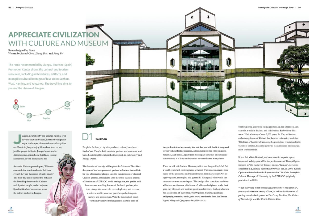 “在我的家乡摩洛哥,也有一条母亲河——德拉河。她和中国京杭大运河一样,流经1000余公里。来到江苏学习后,我了解到江苏是全国为数不多同时拥有江、河、湖、海、泉的省份。”南京邮电大学海外教育学院Salma在图书馆阅读完本期文旅指南后表示,“春光明媚,我想沿着文旅指南里这些精彩的线路走一走。在我看来,江苏旅游(西班牙)推广中心推荐的《文明互鉴,走进文博》线路非常有趣,江苏人民也和西班牙人一样享受生活且崇尚文化艺术,拥有世界级的博物馆以及巧夺天工的手工艺品。跟随《游“园”惊梦》这条美国翠明假期旅行社推荐的线路,还可以打卡我最向往的苏州园林。指南的园林插图让我心向往之,清晰有趣的文字让我出游前不用花精力查攻略,跟着这本指南就可以在江苏开启说走就走的春日旅行。”
