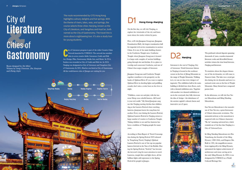 网友@juanjuan520表示,跟随《来江苏,徜徉在世界文学之都与世界美食之都》这条线路,可以深度打卡“世界文学之都”南京、“世界美食之都”扬州和淮安。“烟花三月下扬州,来自1200多年前李白的推荐,让扬州成为很多人的春日向往。《马可·波罗游记》也曾记录了扬州作为当时商业中心的盛景。又到了烟花三月,我和女儿也想跟随这本指南,追寻中外文人笔下的扬州,走入‘早上皮包水,晚上水包皮’的慢生活,穿花拂柳养眼,品尝清炖狮子头、大煮干丝、软兜长鱼、钦工肉圆等淮扬美食养胃,享受传统扬州足道养身。跟着这条线路,我还学到了一首南京元宵看花灯的童谣——‘娃娃哎,出来玩灯喽!不要你的红,不要你的绿,只要你一根红蜡烛!’,让我不禁想起春节期间夫子庙五彩缤纷的花灯与秦淮河里倒映的灯火相映,古都的清辉让人倍感思亲。”